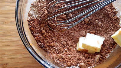 Cuando esté listo, añadir 1 barra de Mantequilla fría, sin embargo, asegúrese de que para ver video sobre cómo presionarlo. Puede utilizar un tenedor si no tienes un cortador de pastelería, el punto aquí es conseguir la cobertura todo desmenuzable y cosas.