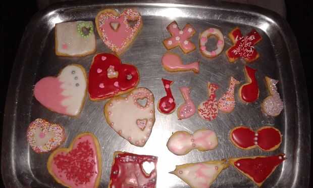 Para hacer un pequeño corazón que tienes que dejar caer una gota (otro color) en la cookie helada y arrastre el palillo a través de él para formar un corazón.