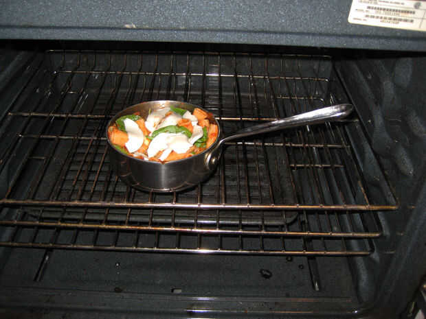 Use su tomaollas para sacarlo del horno y colocarlo en horno. Es de suma importancia hacer uso de la manopla como el mango metálico para su olla que ha sentado en un horno de 350 grados durante diez minutos está obligado a quemar. Es una buena idea dejar el tomaollas alrededor de la manija recuerda que está caliente.