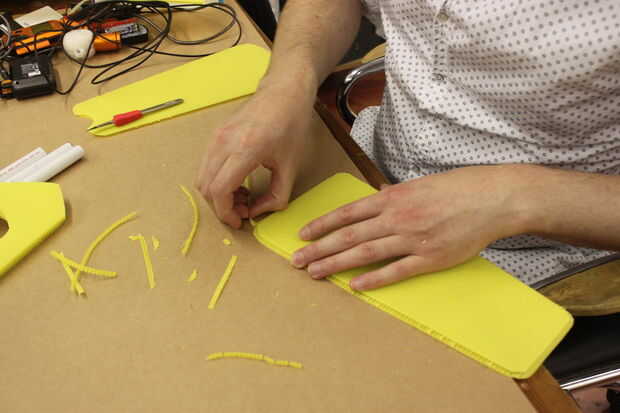 La tarjeta la barbilla herramienta cortará un filete en un lado de la red. Alguna consideración será necesario para asegurar que estén alineados los rostros de la derecha. Trate de todo lo poner que en una mesa/suelo pensar a través de la secuencia - se van a ahorrar los errores más adelante.