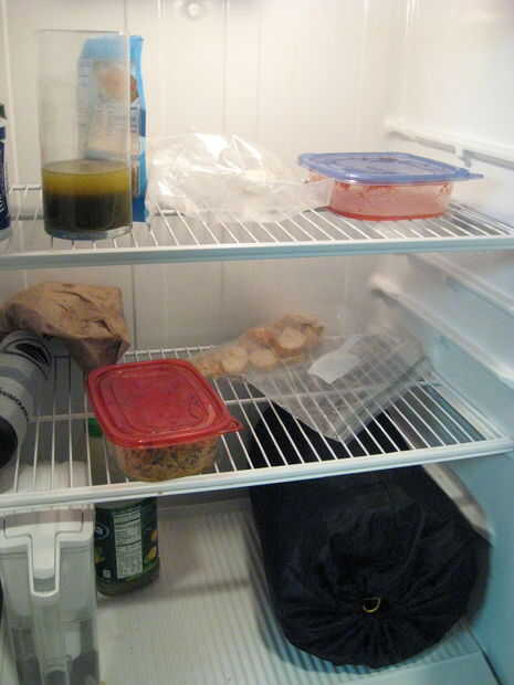 He encontrado que en la parte superior del refrigerador, que la luz ha sido bloqueada por la bolsa, en la parte inferior es susceptible a gotas y cosas (sacos de dormir de buena vienen con sacos impermeables o resistentes al agua y se lavan fácilmente limpio)!