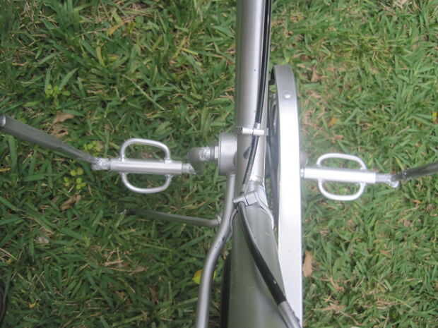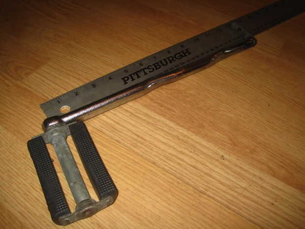 Con el pedal a medida en su lugar, soldar a 90 grados una manivela extendida y pedal. Para hacer esta extensión, debe soldar una barra a una biela adicional para lograr la longitud deseada doble--cerca de 13 pulgadas. No tienes que poner mucho de su peso en el pedal exterior así que uso el interior del pedal para empujar y cuando parar.