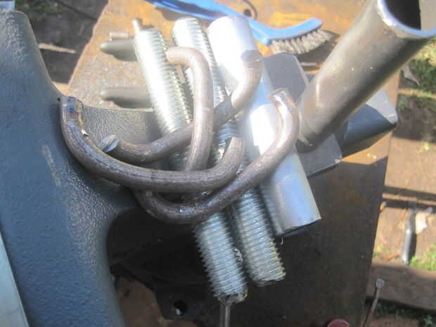Simplemente uso 5" de la tubería que se deslice sobre la varilla y soldar dos varillas de 3/8" doblado como en la imagen.