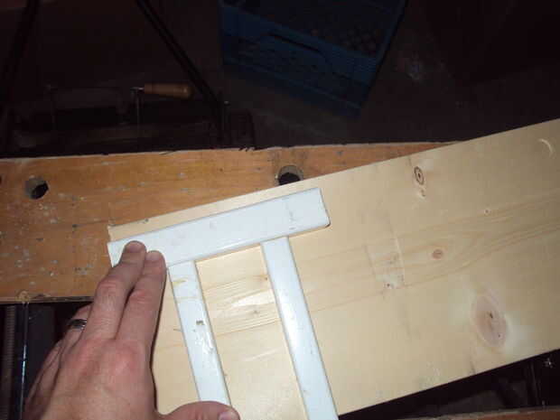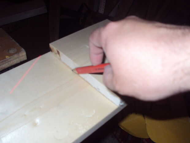 Usando una escuadra, extienda la línea a través de la tabla de desecho.