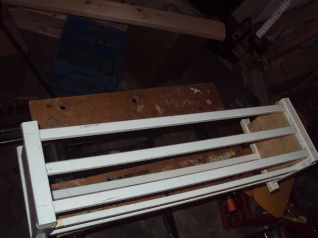 Después marqué todos los agujeros, me cayó la maceta y agarró mi w de broca. No trato de hundir los orificios previamente perforados en la chatarra, solo por el lado de las piezas de la cuna para evitar partir las tablas durante el montaje final.