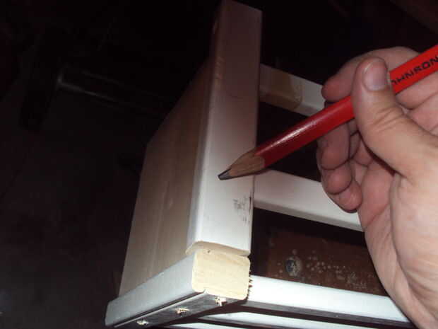Con él sentado allí, he marcado los lugares por donde quería que los tornillos. 3 bares, 3 tornillos por cada lado.