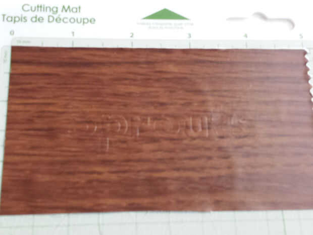 Recortar el papel de contacto para ajustar su plantilla. Corté una pieza de 3 "x 5". Pegar el papel de contacto a la almohadilla de corte con el papel del forro lateral hacia abajo.