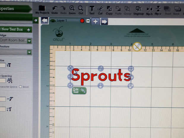 Utilizar software Cricut sala de arte para el diseño de una plantilla de la palabra Brota. Estoy usando la fuente básica de libre Cricut que vino con mi maquina. Corte la plantilla utilizando su máquina Cricut con la siguiente configuración: