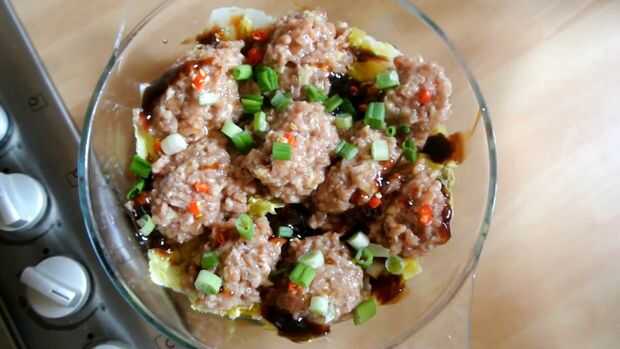 Al vapor albóndigas de carne de cerdo sobre Col de Napa (5 / 6 paso)