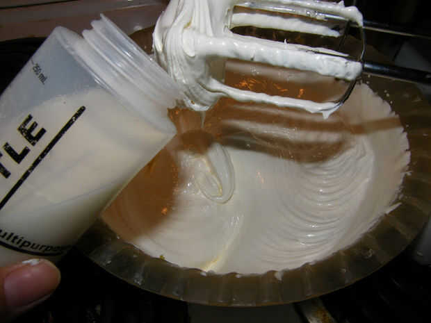 Batir en la leche un poco, la harina un poco, luego otra vez la leche, luego harina otra vez, hasta que agotado