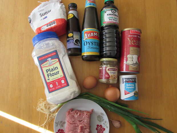 bollos de cerdo al vapor son mi comida china favorito! Para resumir, su básicamente de verduras y carne de cerdo envuelven en un pedazo de masa y luego al vapor. Permite comenzar!Paso 1: Los ingredientes 1/2 lb de carne de cerdo molido, 1 cebolla, 3