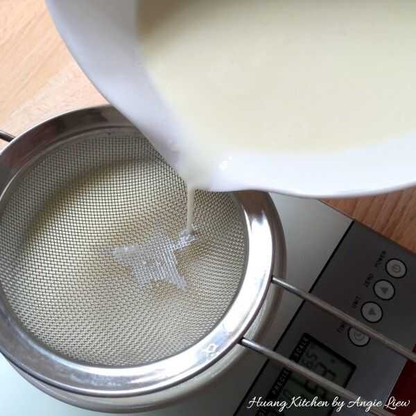 Paso 16: Poner un recipiente al vapor en una escala y vierta la mezcla de jengibre leche en utilizando el colador.