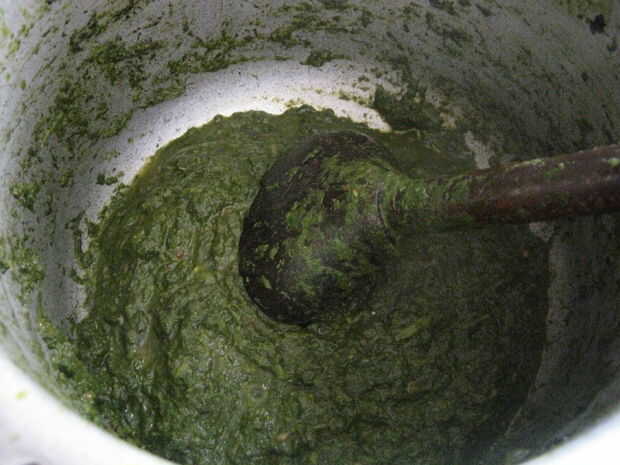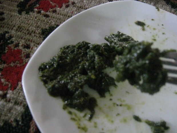 - blanquear la espinaca (hervir, desagüe. moler ligeramente)