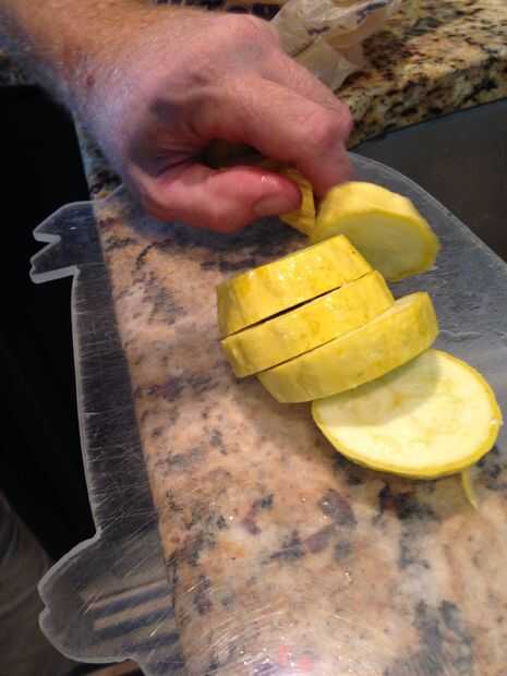 Cortar la calabaza en cuartos o mitades. Luego colóquelos en un recipiente de vidrio.