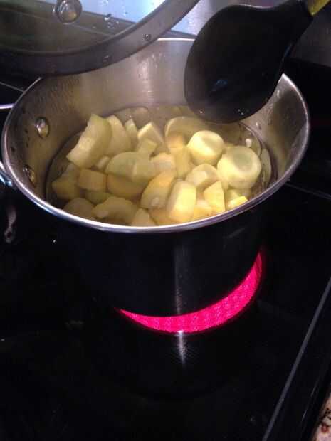 Poner la picada calabaza en agua hirviendo y coloque la tapa sobre la olla. Les de vapor hasta que estén suaves.