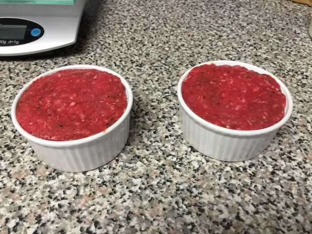 En este punto tienes que sazonar la carne molida y también mezclar en cualquier barbacoa, Worcestershire, etc. de la salsa a la carne ahora así. Una vez que la carne es sazonada y mezclada alrededor adelante y dividir la carne en consecuencia (1/4-1/3 Lb por hamburguesa) y cada hamburguesa en el plato del molde como se muestra.