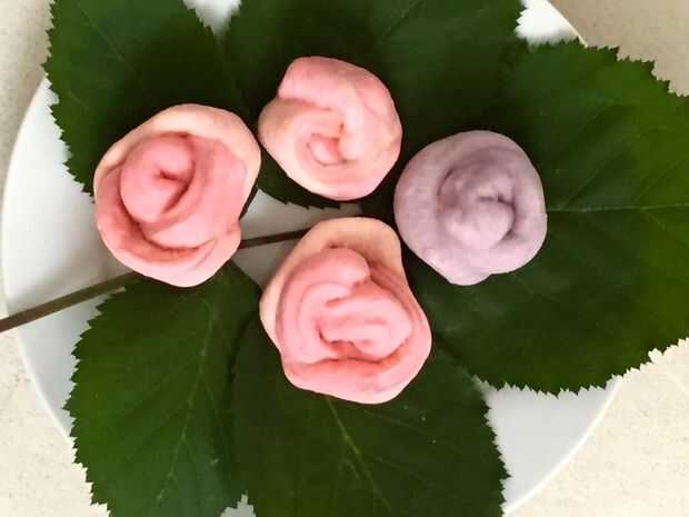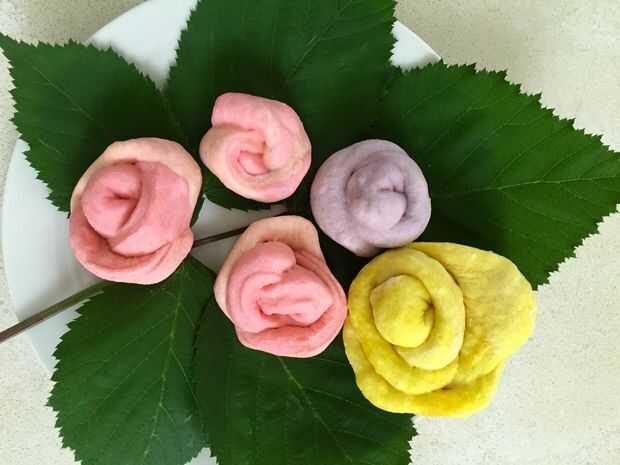 Bonito colorido al vapor bollos son una divertida manera de alegrar su hora mesa o té del desayuno.