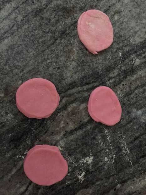 O usted puede estirar una hoja grande y cortar círculos con un cortador de galletas circulares.