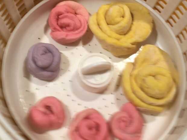 Engrasar la charola del vapor y coloca cada rosa en él con cuidado, lo que permite suficiente espacio en el lado de ellos ampliar.