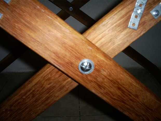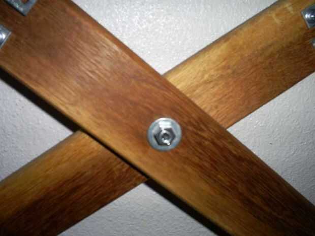 Perforó un agujero en el punto cruzado de los dos rectángulos, luego colocar un perno y las arandelas en ambos lados del orificio.