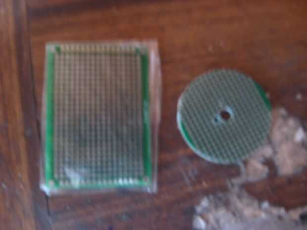 Ahora con su prototipo PCB corta la forma que quisiera, he utilizado un serrucho, taladrar un agujero en el medio para conectar con el titular del TC, y más otro agujero para alimentar a los cables a través de, a continuación, usando la tuerca ha encontrado sólo pone juntos para tener una idea donde el mejor lugar para poner LEDs y resistencias.