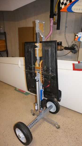 Tenía una caja llena de material de fibra de carbono tejida en un tubo de 24" a través de. Hizo la bandeja directamente sobre el ala de LS8, protegido por la película plástica. El tubo es de McMaster Carr, como la mayoría del hardware. 10" las ruedas son del Departamento de aviación en el puerto de carga.