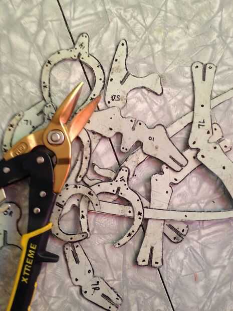 Si usa tijeras de metal para cortar metal de hoja fino tales como metal de conducto, rizos y puede ser difícil de flaten correctamente. Estos pasos foto Mostrar que se puede hacer con una navaja. Las ilustraciones son para un soporte pequeño, pero he