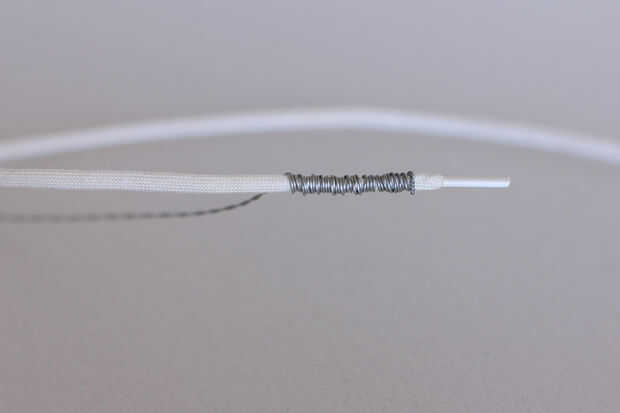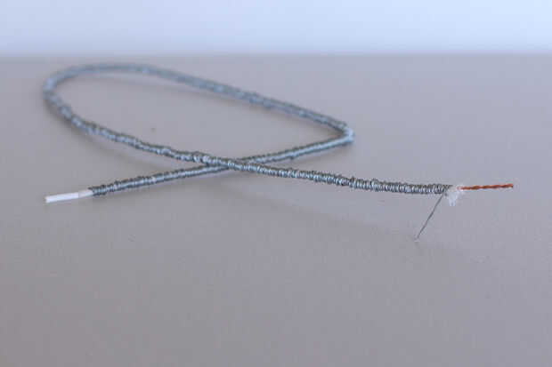 Comenzar a envolver el cable galvanizado alrededor el cordón con núcleo de cobre. Envuelva la cosa entera hasta llegar al final.