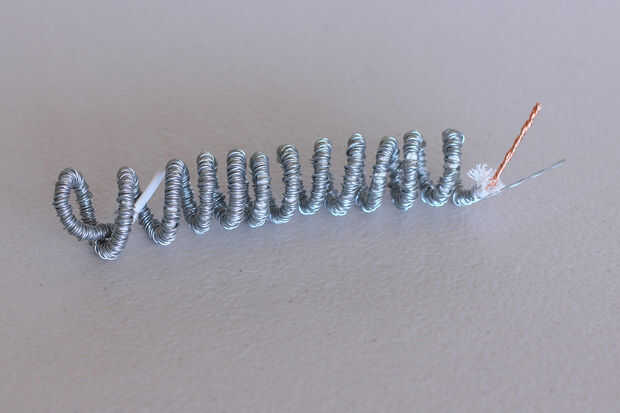 Para ahorrar espacio, enrolle el cable en sí mismo o envuélvalo alrededor de sí mismo. Pueden ser tan creativos como como aquí, sólo recuerda que el cobre expuesto y un extremo de su alambre galvanizado nuestros cables de conexión para medir el voltaje.