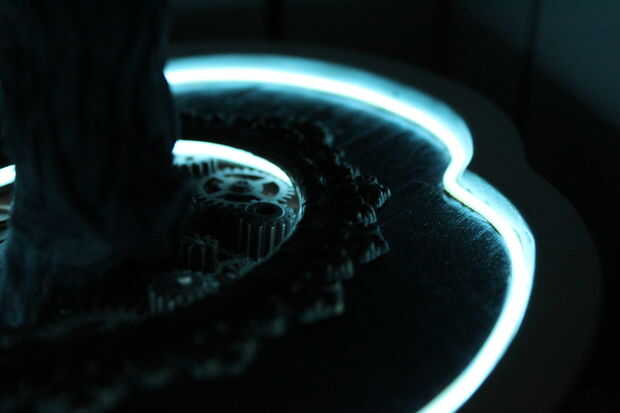 esto fue creado para ser algunos eye-candy para mi cocina. Quería algo único para un espacio en blanco en mi muro y agregar movimiento, luces de blinky y mecánicas interesantes "entrañas" hizo aún mejor.En definitiva, este proyecto terminó requi
