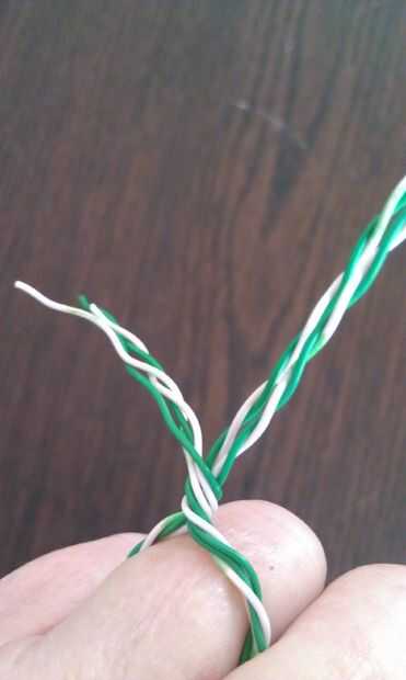 Paso 2: Reunir los cuatro cables y tuerza en el centro. Con un dedo como su guía, gire los cuatro hilos de alambre en la parte superior del dedo, dos veces. Este patrón es puede ser por encargo caber cualquier dedo, grande o pequeña. Incluso pueden hacer pequeños ajustes a la medida después de completar el anillo.