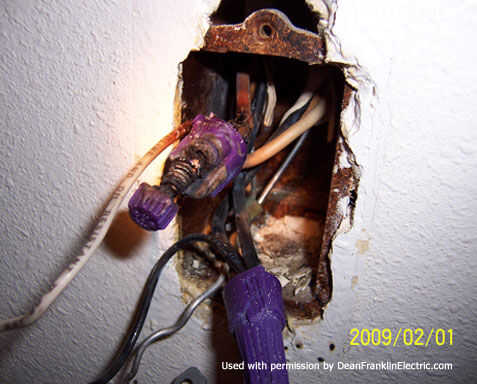 Estas son las fotos (que no pertenecen a mí) de empalmes mal realizados que han recalentado, se incendió y derretido. Como esto sucede a menudo porque ellos mismos se conectan los cables mal uno al otro, así que por el contrario, el resorte del metal dentro de la tuerca para cables (que nunca fue significada para conducir la electricidad en todos) comienza a circula la corriente por el contrario, eventual calentamiento y captura el plástico en el fuego.