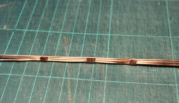 Asegúrese de que el comienzo y los extremos de los alambres de la envoltura están todos en el mismo lado.