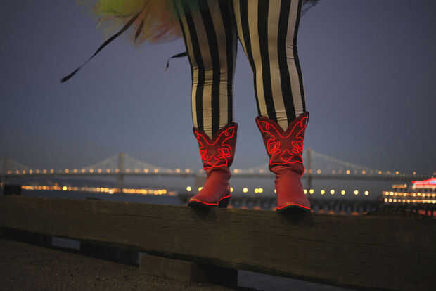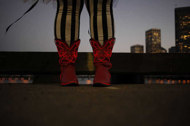 Este proyecto de bota campera EL alambre es probablemente la pieza de tecnología usable más cool que he hecho hasta la fecha, aunque LED hombreras es segundo lugar todavía. EL alambre es probablemente uno de los materiales más inspiradores que he trabajado en mucho tiempo. Tiene mucho potencial para hacer algo awesomer con una fina línea de luz para acentuar el diseño. Cuando empecé a trabajar con él, sabía que sería chévere para incorporar a los motivos bordados encontrados botas de vaquero.