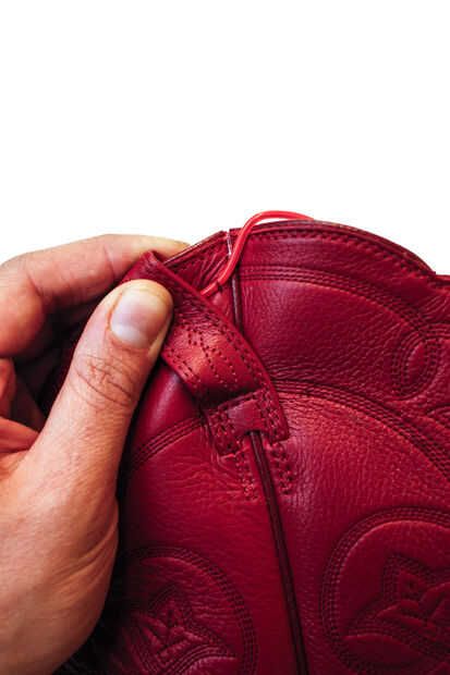 Me di cuenta de que si he usado los agujeros existentes de bordado en el maletero, fue mucho más fácil coser EL alambre en su lugar.