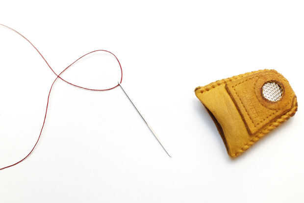ASEGÚRESE DE UTILIZAR UN DEDAL! Estas agujas son super duper fuerte y están diseñadas para perforar a través de la piel de la vaca, la piel no es demasiado diferente :-/