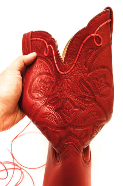 Se tarda, como mucho tiempo. Y a veces es difícil conseguir su mano y la aguja en el cañón de la bota. La paciencia es clave. Según el bordado estilo botas que usas puede ser desafiadora. Me encontré hacia atrás doblando la bota, o doblándola como usted haría con calcetines, para tener en mis manos y la aguja en los puntos.