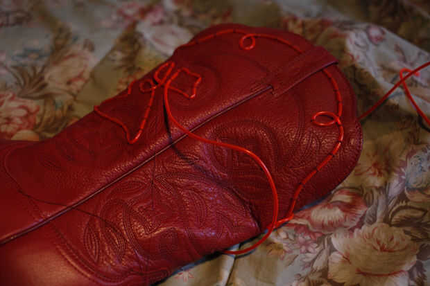 Tomar su proyecto por todas partes! Me encontré EL alambre de coser a las botas en la lavandería, en el parque con el perro en la cama, etc.! Cuero es un proceso paciente, pero era impresionante para los frentes de estos cachorros todos con impresionante EL alambre.