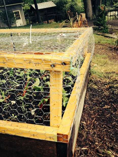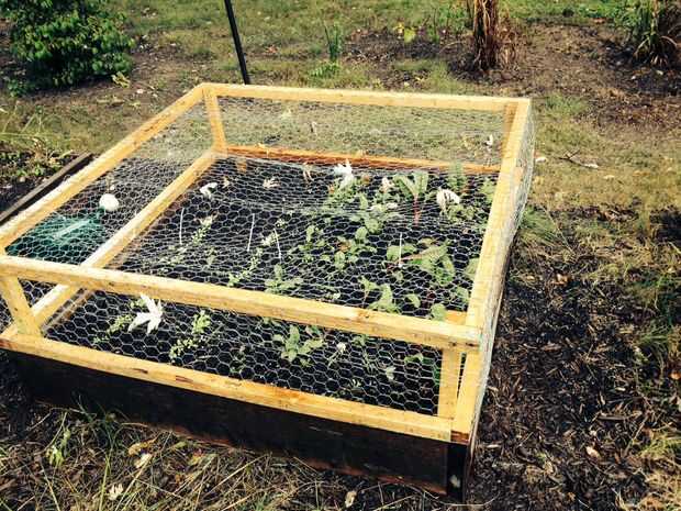 entre los conejos y las marmotas se consumía mi cultivo de primavera entera de lechuga, acelga y espinaca. Construí esta jaula para caber encima de la cama elevada que estos cultivos crecen en. La jaula está hecha de trozos de 2 X 4 que encontré en la basura en un sitio de construcción. Primero rasgó por la mitad. Luego construí dos cuadrados con juntas a tope. Las plazas son del mismo tamaño que las tablas subyacentes para la cama elevada. Luego me uní a ambos cuadrados con una longitud de 2 X 4 arrancó la longitud del alambre de pollo (1 pie). Usted puede fácilmente el doble de la altura. El alambre de pollo es con grapas sobre el uso de una pistola de grapas. También "cosí" los segmentos de alambre de pollo junto con alambre de enfardar y zipties.