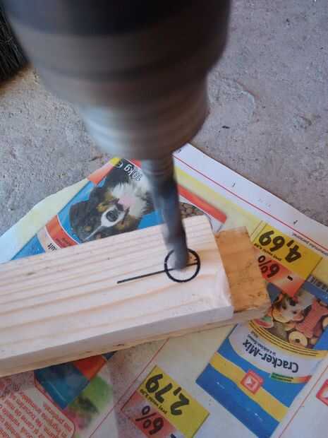 No creo que necesita mucha explicación: cortar las piezas de madera en el tamaño adecuado y limpie los bordes de cualquier astillas; pegue y atornille o clave les juntos. Taladre un orificio en la parte superior de la banda y poner el tornillo que se llevará a cabo el tabulación rollo de alambre. También le falta un pequeño trozo de madera, o un clavo grueso, o una pluma corta en el tamaño adecuado (unos 2-3 pulgadas) con los restantes titulares de alambre para hacer la marca 0, esto es donde se corta el alambre después se desenrolla a la longitud deseada.