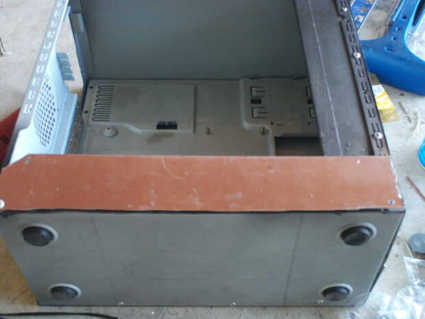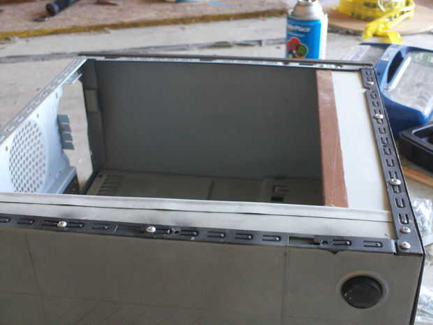 Entonces tuve que hacer un labio para el plexiglás, que no era lo suficientemente grande como para cubrir todo el caso. me utilizó el material metálico y un labio inferior. entonces para cubrir el lado horriblemente corte de plexiglás, hice un labio superior que pellizca el plexiglás en su lugar.