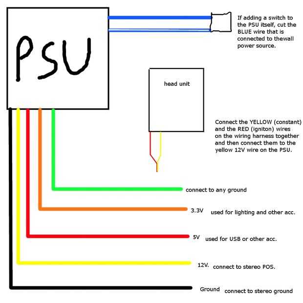 como he dicho antes, cable el cable verde con cualquier negro. luego coloque este conjunto de cables al neg en el estéreo o adjuntar cualquier otro cable negro de la fuente de alimentación al borne NEG en el estéreo. (no importa)