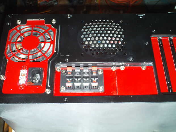 me decidí a pintar la parte exterior de la fuente de alimentación, así que tomó aparte, pegado los orificios y pintado/recubrimiento claro.