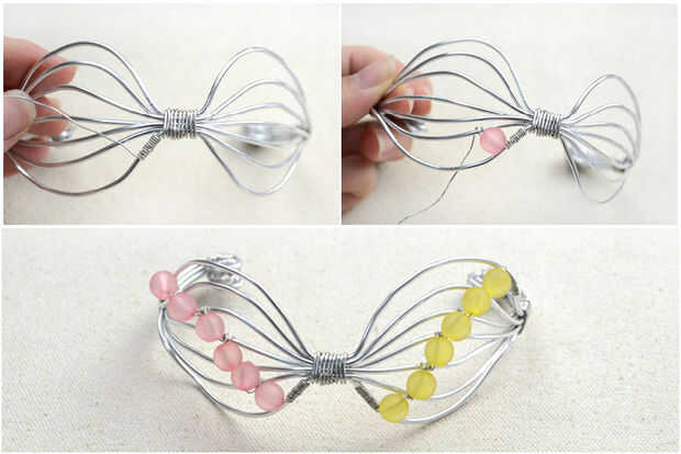 3 º, seguir añadiendo cuentas y bobinado de alambre hasta que te quedas sin los 12 granos.
