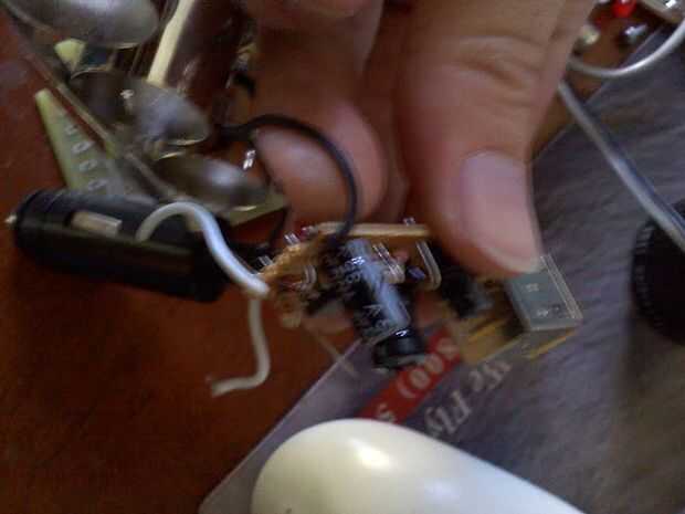 Soldadura 2.) el cable blanco a la parte inferior de la pieza de metal plana. Otro, más pequeño, blanco alambre a la pieza de metal plana de la soldadura. (menor irá al usb por lo que no necesita ser larga)