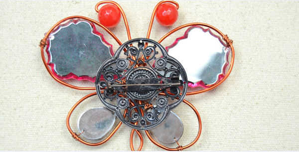 Alambre embalaje joyería Tutorial hacer un broche de mariposa Vintage con perlas (8 / 9 paso)