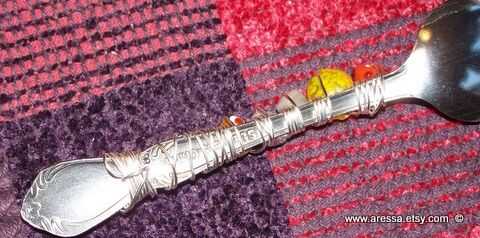 Una vez que haya agregado todas las cuentas que desee, voltee la cuchara y ejecutar el cable sobrante por la parte trasera de la cuchara, llevar el alambre hacia arriba y corriendo atrás unas cuantas veces. Envolviéndolo alrededor del alambre de vuelta como este ayudarán a fijar el cable.