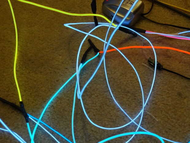Terminé el cable alrededor de mi Kit de tambor de la bobina, y usando el inversor activado sonido, enciende para arriba según lo que interpreto. ¿Bastante cool, derecho? No sé si usaré en un espectáculo, ya que el inversor deja hacia fuera un ruido agudo, que parece interferir con amplificadores y tal. Voy a tener que hacer algunas pruebas más...