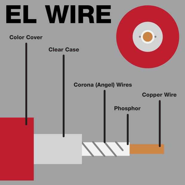 Cubierta de color - esto es la capa más externa del alambre de EL y es un plástico de vinilo que determina el color en el que brillará en el cable.