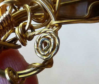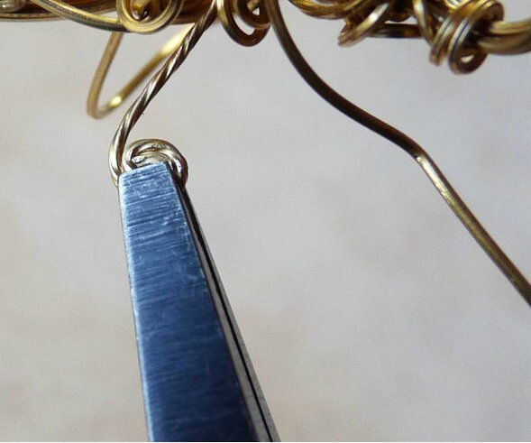 Haces la espiral usando sus alicates de punta redonda para hacer una pequeña ronda de lazo en el extremo de un alambre. Luego enrolla el lazo en una espiral apretada con alicates de punta planos. Que este mantenga el alambre en una mano y gire la pinza en la otra mano un cuarto de vuelta en un momento. Hacer la espiral apretado contra las cuentas de la viruta.